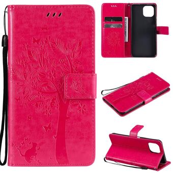 For Xiaomi Mi 11 Lite 5G Tree & Cat Pattern Pressed Printing Horizontal Flip PU Leather Case with Holder & Card Slots & Wallet & Lanyard(Rose Red) (Diaobaolee)