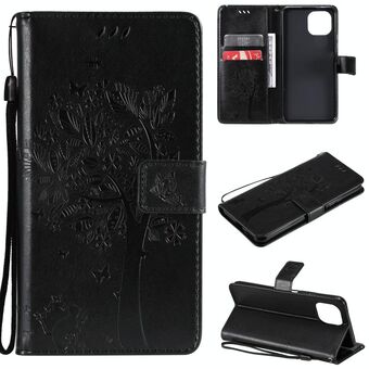 For Xiaomi Mi 11 Lite 5G Tree & Cat Pattern Pressed Printing Horizontal Flip PU Leather Case with Holder & Card Slots & Wallet & Lanyard(Black) (Diaobaolee)