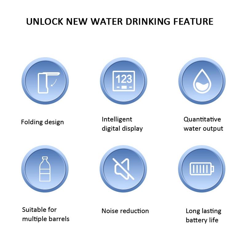 2. Quantitative water dispensing: Touch the button to start pumping, and the screen will display the current water output. When the water output reaches 999ML, pumping will automatically stop, or the button will be pressed to pause the pumping.