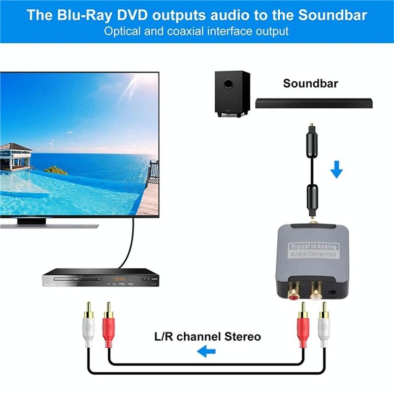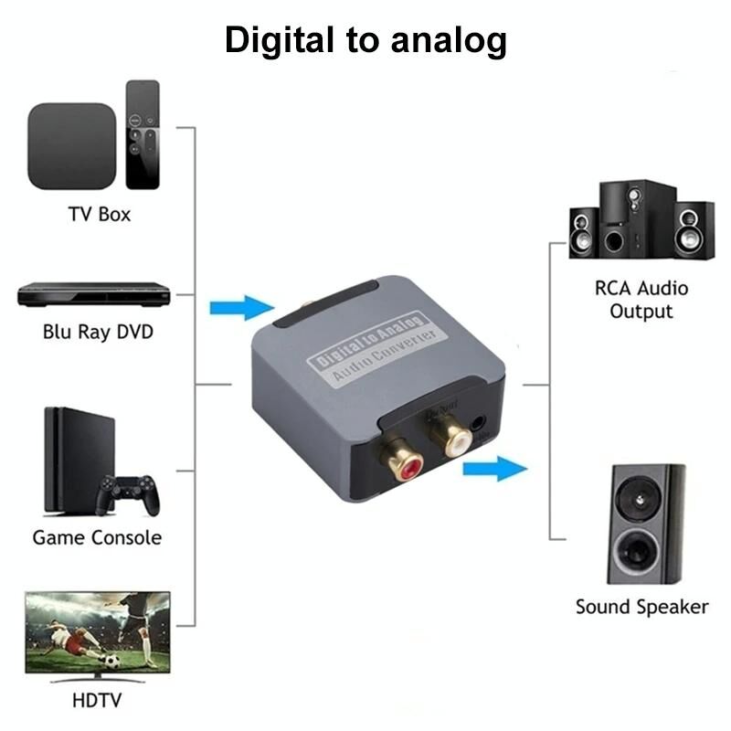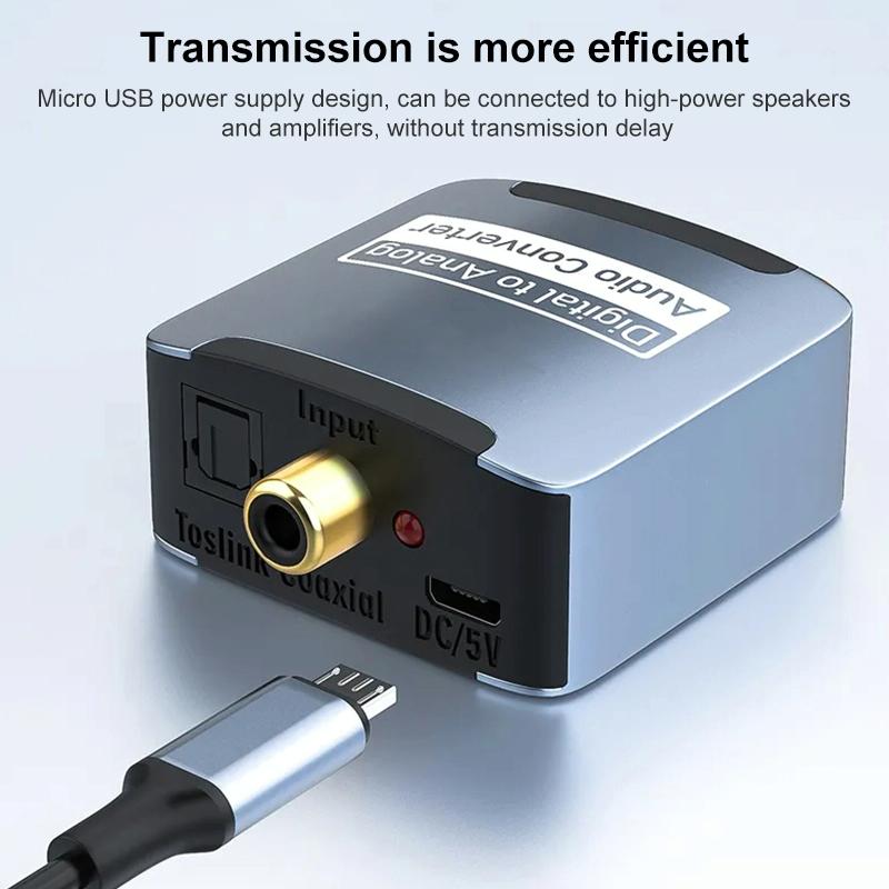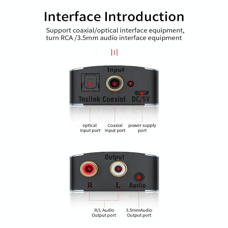 1. The digital-to-analog audio converter can be used for home or professional audio switching. It can convert coaxial cable or Toslink digital audio signals into analog audio, and can be connected to peripheral devices such as power amplifiers through standard RCA style jacks.