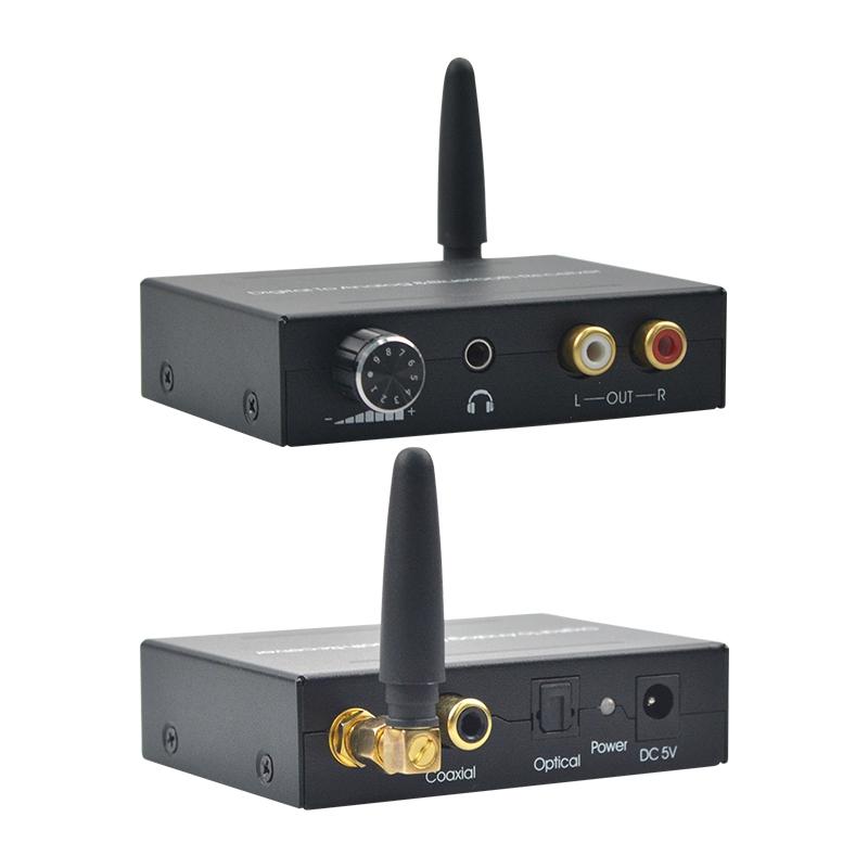This DAC& Bluetooth converter converts optical or coaxial digital audio signals and Bluetooth receivers into stereo analog signals. Help users connect high quality digital audio signals to regular AV amplifiers. This product is very suitable for home theater, teaching, training structure, conference rooms, home appliance stores and other places
