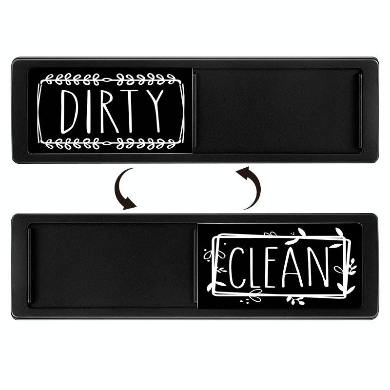 Dishwasher Magnet Clean Dirty Sign Double-Sided Refrigerator Magnet(Black Frame Black)