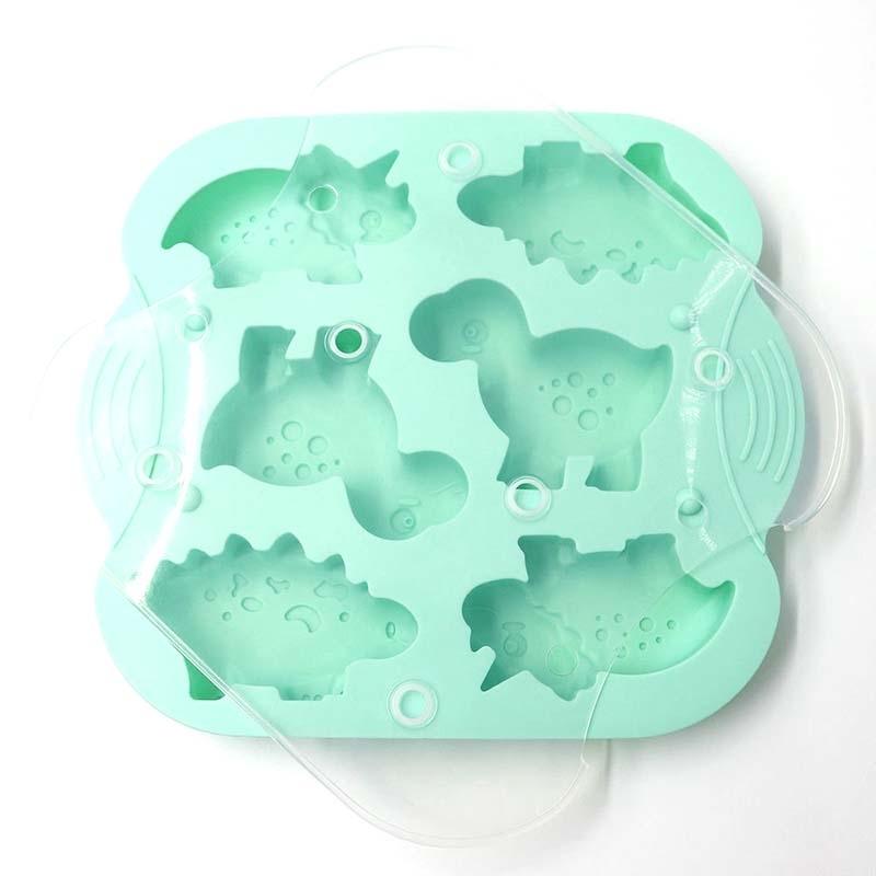 DIY 6 Grid Silicone Dinosaur Cake Mold Baby Food Supplement Mold Baking Tools(Light Green)