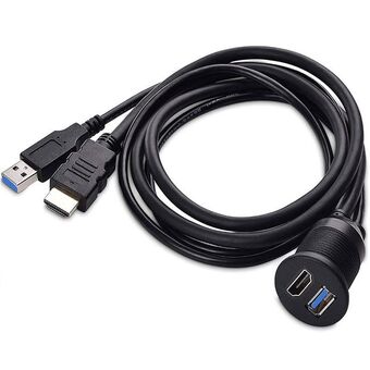 2m USB3.0+HDMI Car Waterproof Cable Motorcycle Boat Dashboard Extension Wire(Black)