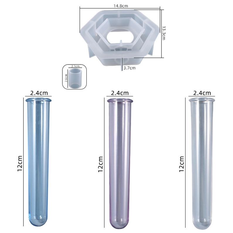 4. Mold size: Hexagon: 14.8 x 13.3 x 3.7 cm, Wreath: 2.1 x 2.6 cm, Test tube: 12 x 2.4 cm