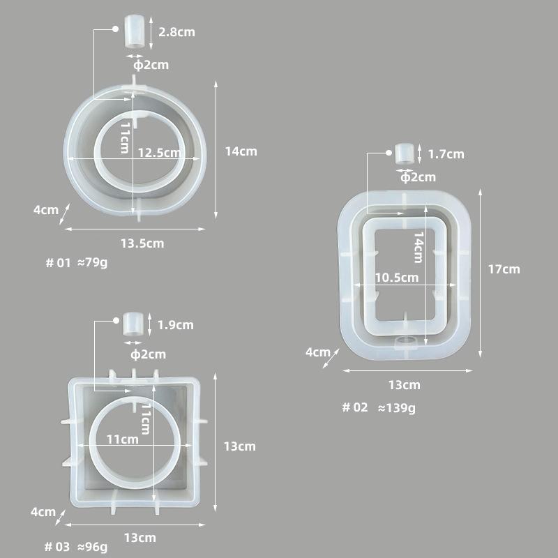 5. Dimensions: Square: 13cm, Rectangle: 13 x 17cm, Irregular circle: 13.5 x 14cm, Heart: 5.7 inches