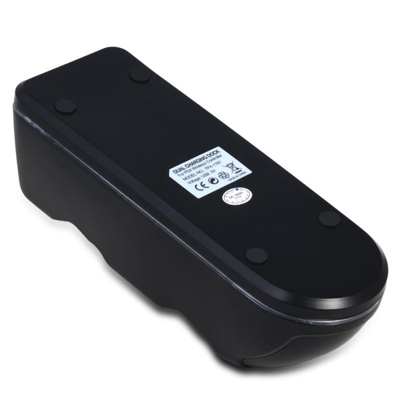2. Install the PS4 controller in the upright position on the charger. Make sure that the EXT connector of the PS4 controller is properly inserted into the charging terminal of the product. When the handle is normally charged on the dock charger, the corresponding PS4 handle symbol icon in the front lens changes from green to red