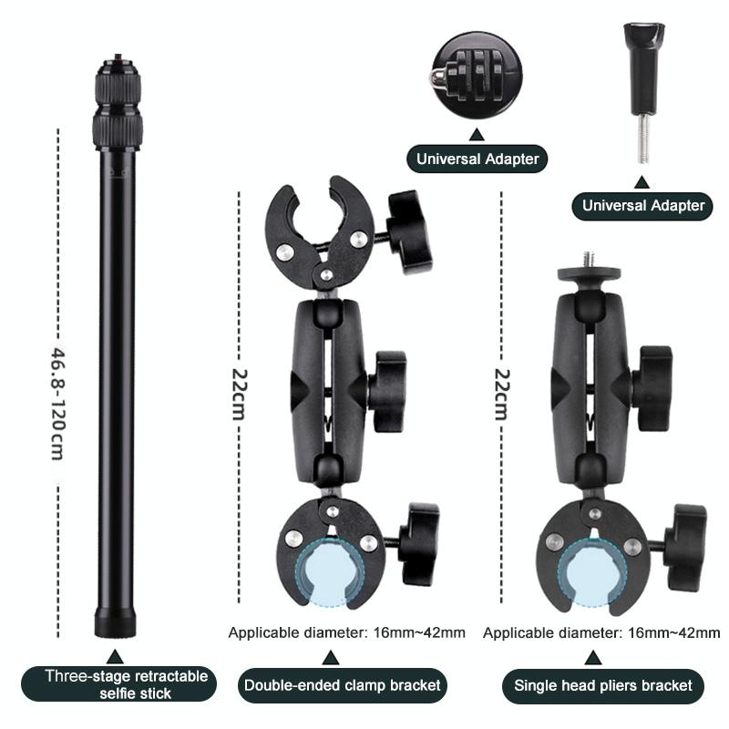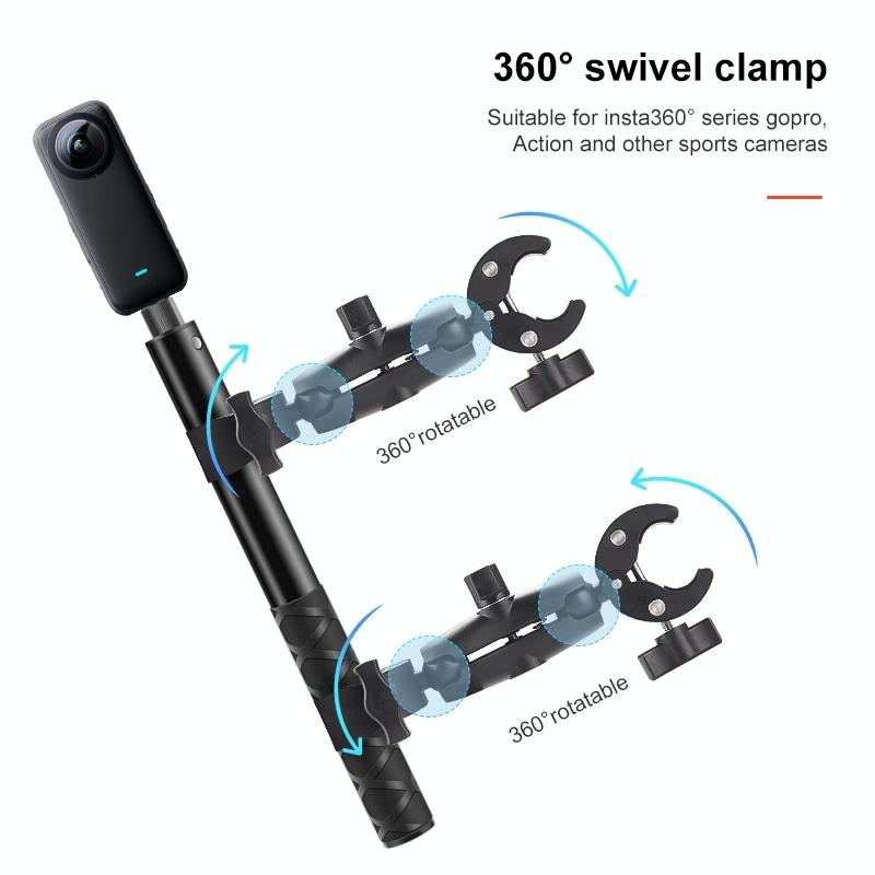 5. Widely used to install panoramic cameras, sports cameras, mobile phones, convenient for the first perspective shooting, can be used for live broadcast, selfie, etc.; Can also be used to link the installation of vehicle navigation