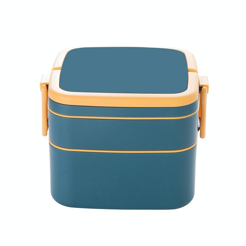 Double-Layer Portable Microwave Oven Can Heat Lunch Box With Lid, Style: Square(Navy Blue)
