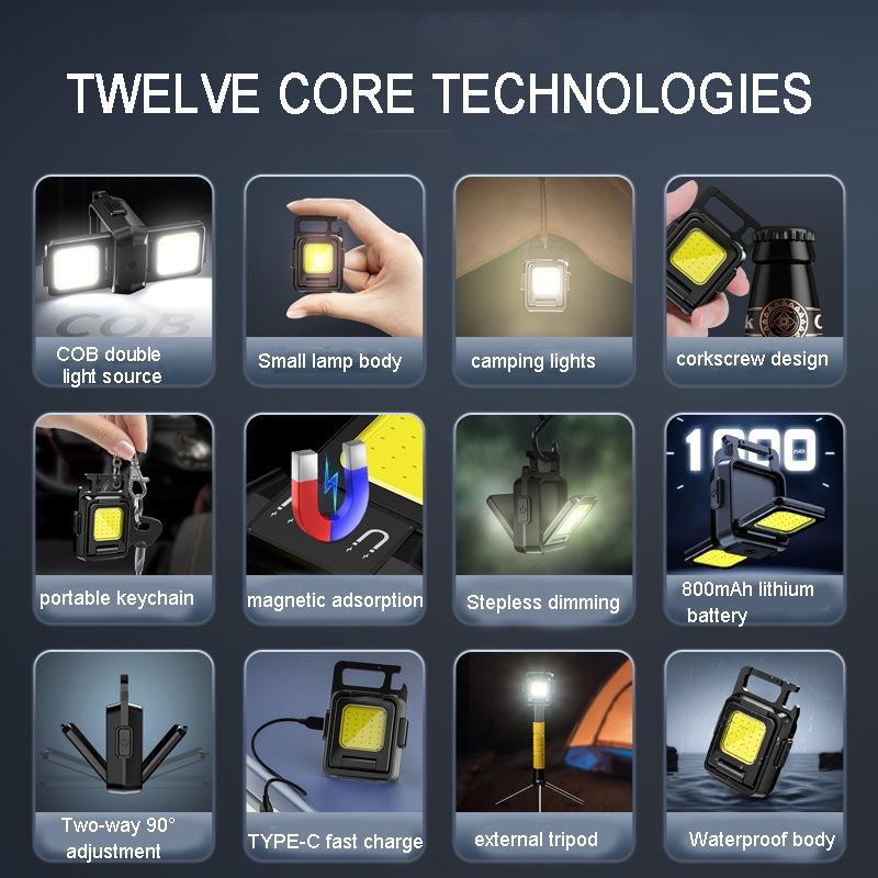 Double Sided COB Flashlight Mini Keychain Light Camping Light Without Stand