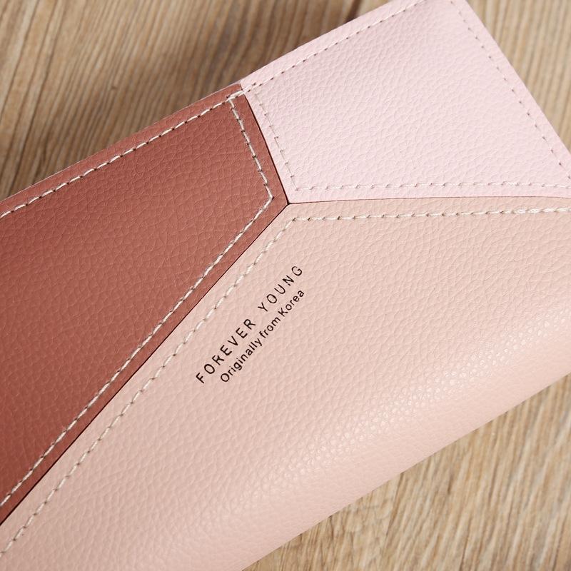 Double Zipper Lady Long Purse Splicing Coin Phone Bag(Red)