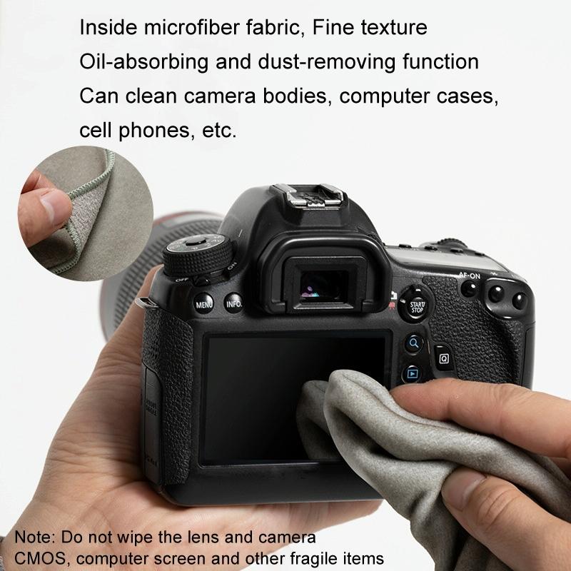 3. Inside microfiber fabric, delicate texture, with oil absorption, dust removal function, can be cleaned camera body, computer casing, cell phones and other equipment (note: can not wipe the lens and camera CMOS, computer screen and other fragile items)