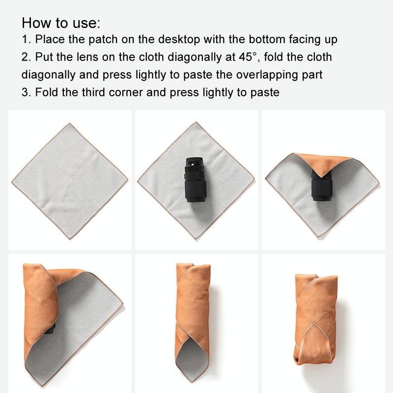 2. 45 degrees diagonally on the lens on the cloth, Paiwan folded diagonally, overlap part of the light press can be pasted