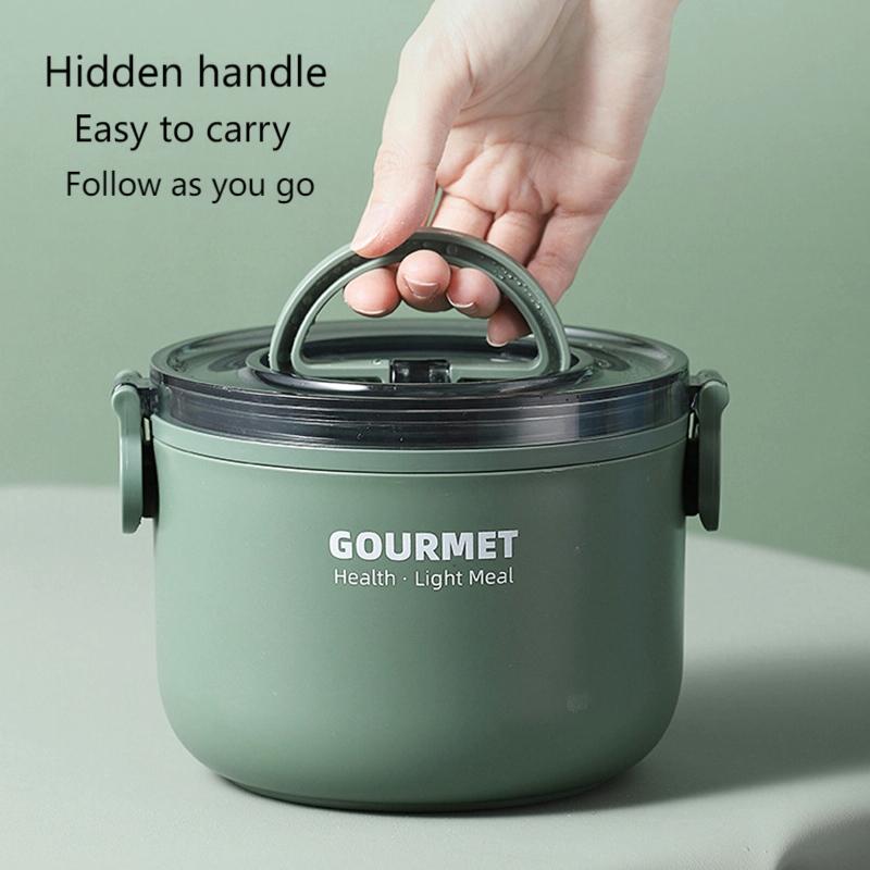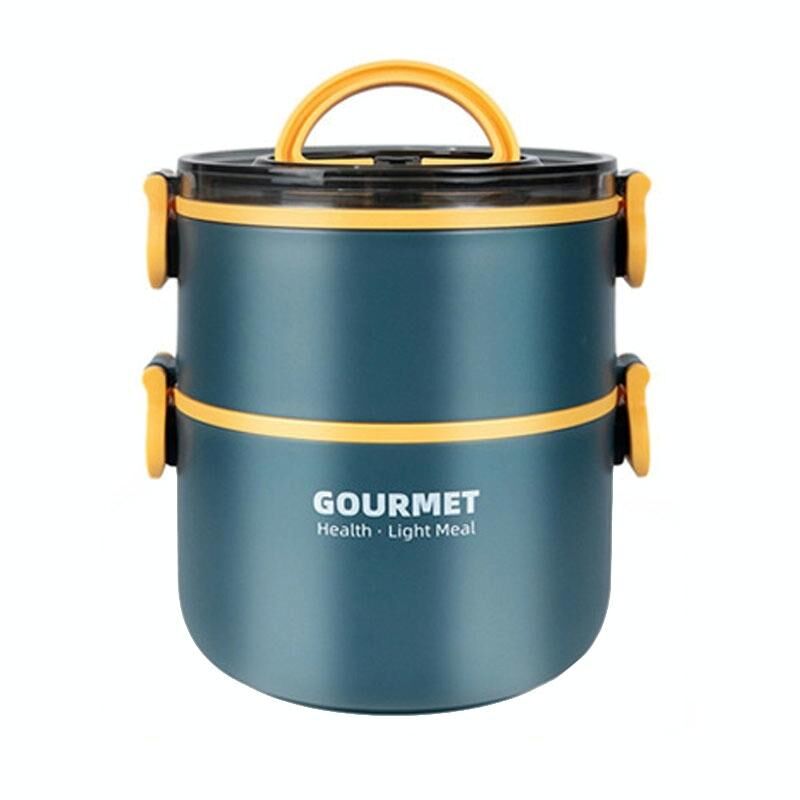 Dual-Layer 1600ml 304 Stainless Steel Insulated Bowl Student Plastic Shell Lunch Box(Blue)