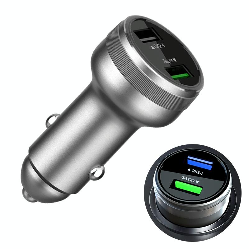Dual USB 66W Car Flash Charger for OPPO / Huawei (Silver)