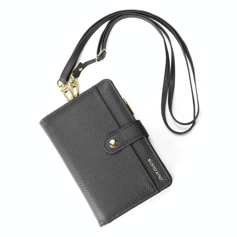 DUX DUCIS PU Leather RFID Multi-card Wallet with Lanyard(Grey) (DUX DUCIS)