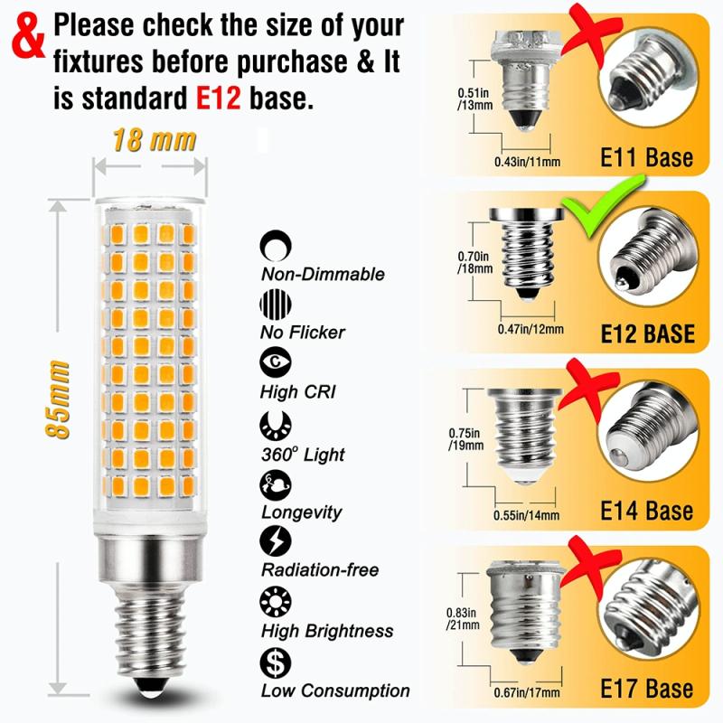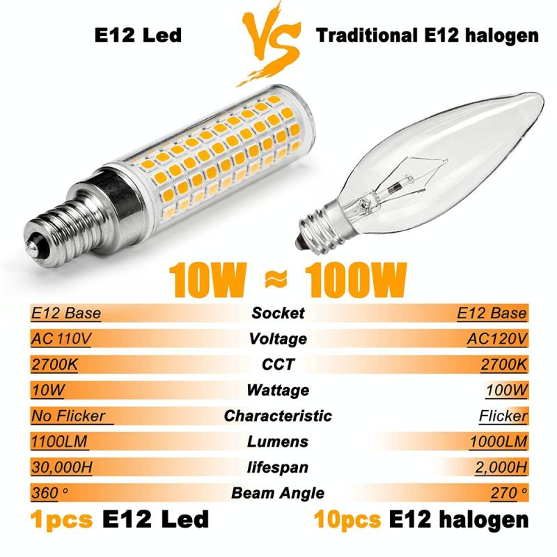 1. Bright Light: E12 LED bulb gives out comfortable light of 1100LM, much brighter than other traditional halogen bulbs with similar wattage.