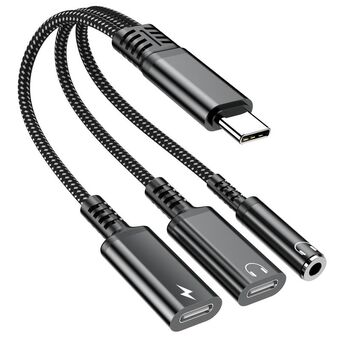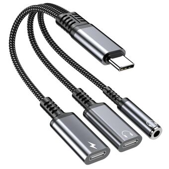 Type-C to 3.5mm and Type-C Charging Audio Adapter Cable(Grey)
