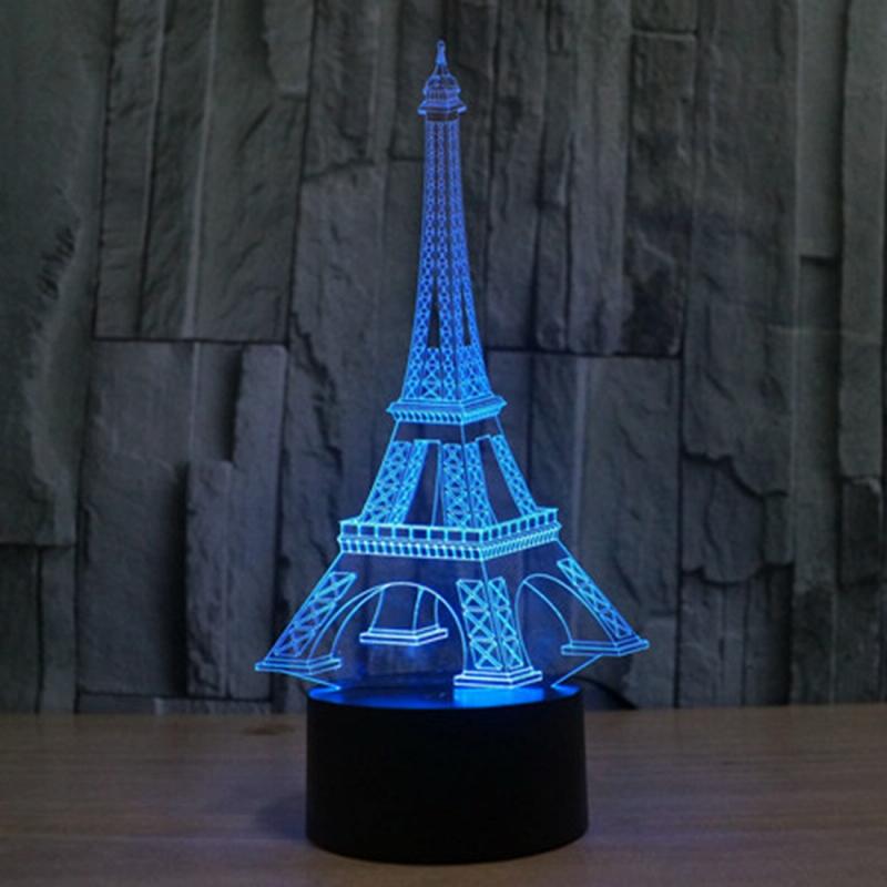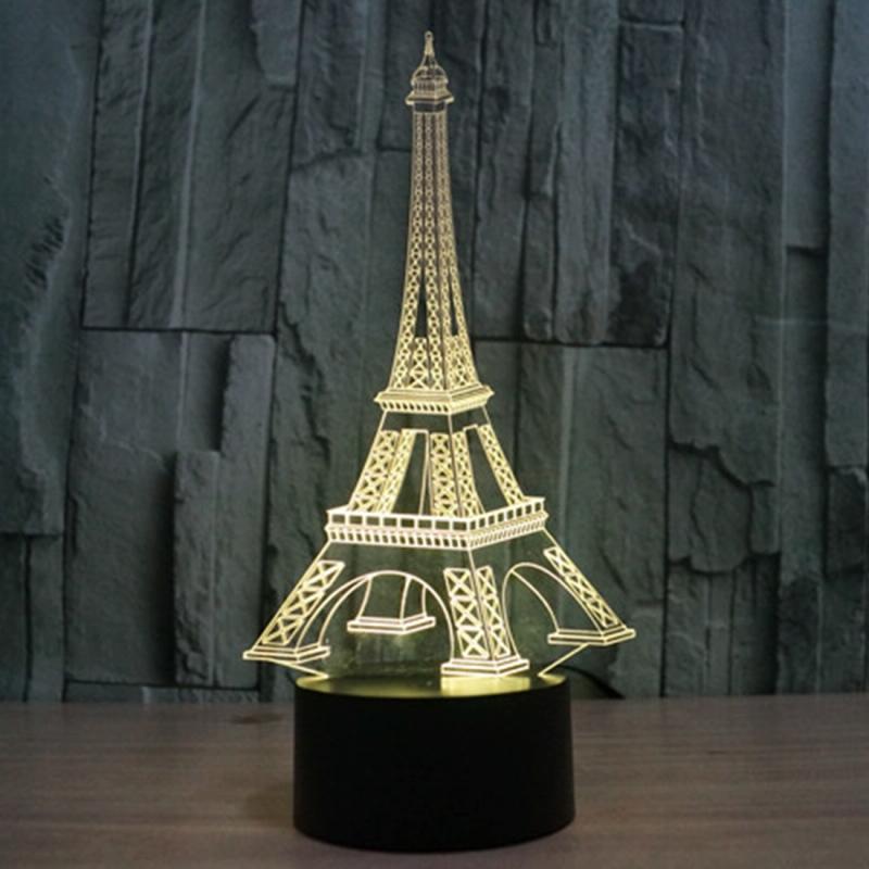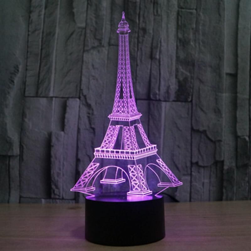 Eiffel Tower Style 3D Touch Switch Control LED Light , 7 Color Discoloration Creative Visual Stereo Lamp Desk Lamp Night Light