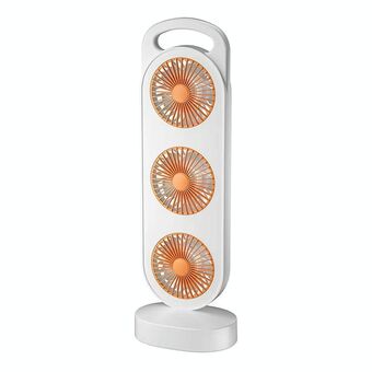 Simple Triple Turbine Design Fan Large Wind Desktop USB Charging Portable Home Outdoor Dormitory Fan(White-orange)