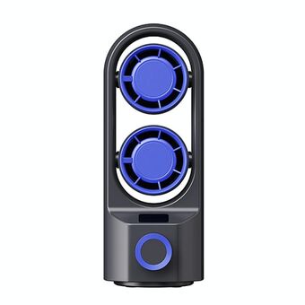 Outdoor Portable Waist High Wind Leafless Hanging Neck Fan With Power Function(Time Wind Blue)
