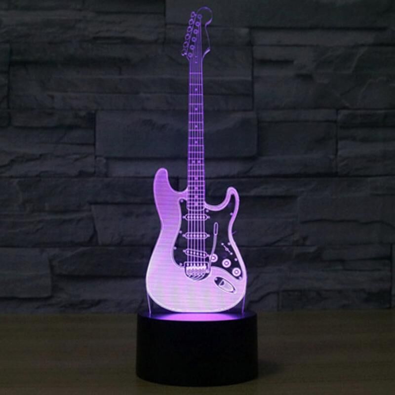 Electric Guitar Shape 3D Touch Switch Control LED Light , 7 Color Discoloration Creative Visual Stereo Lamp Desk Lamp Night Light