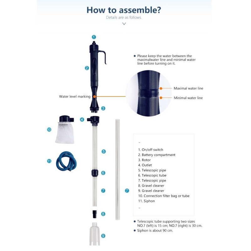 4. Gravel cleaning suction head, filters sand and easy for cleaning fish tank corners