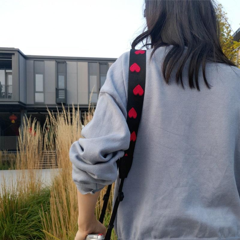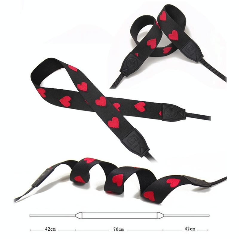 Embroidered Heart Pattern SLR Camera Strap Mirrorless Camera Love Lanyard(Spades-B-Transfer)