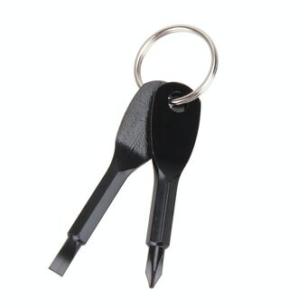 Outdoor Portable 2 in 1 Slotted + Cross Screwdriver Set Tool with Keyring(Black)