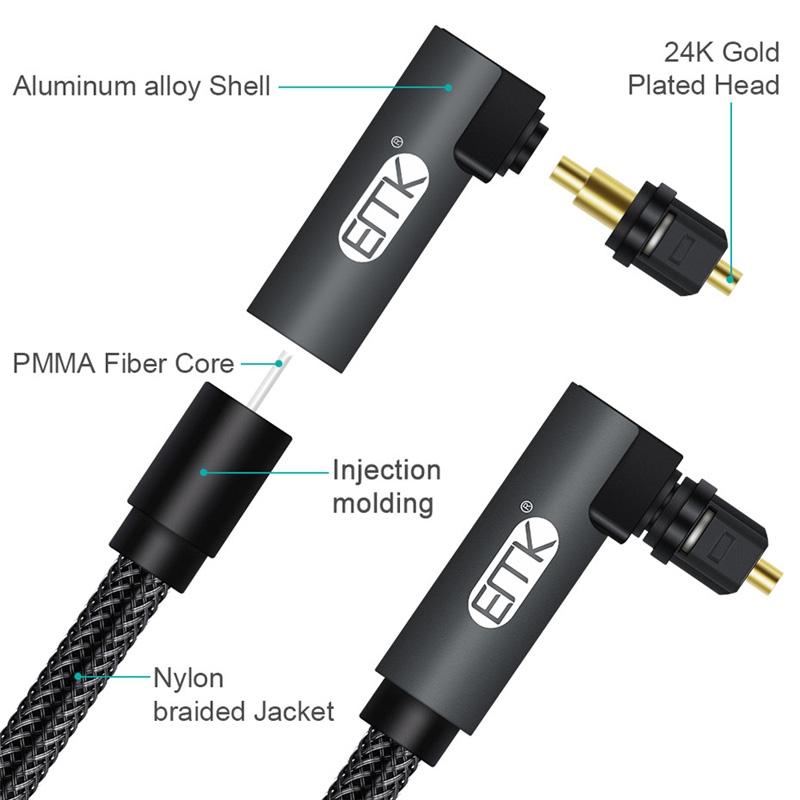 EMK 90 Degree Swivel Adjustable Right Angled 360 Degrees Rotatable Plug Nylon Woven Mesh Optical Audio Cable, Cable Length:20m(Black) (EMK)