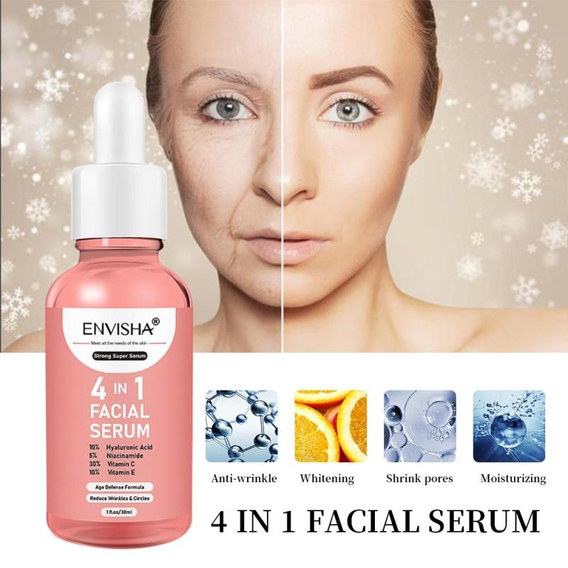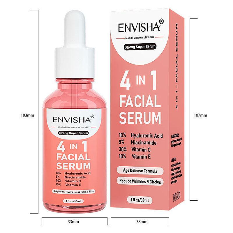1. The 4-in-1 moisturizing serum contains 10% hyaluronic acid, 5% niacinamide, 30% vitamin C, and 10% vitamin E. This powerful antioxidant formula can effectively improve uneven skin tone, neutralize free radicals, enhance collagen, reduce spots, dark circles, fine lines, and wrinkles, and create healthy and radiant skin.