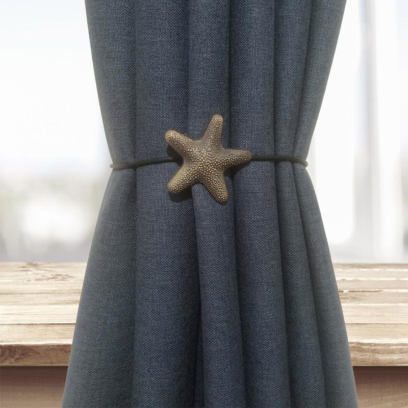 F022 Simple Metal Curtain Straps Without Perforation Curtain Magnetic Buckle(Blue Ancient)