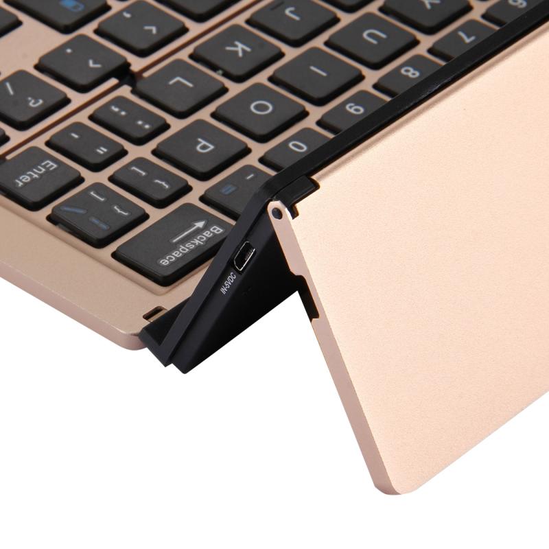 F18 Ultra-slim Rechargeable Foldable 58 Keys Bluetooth Wireless Keyboard with Holder (Gold)