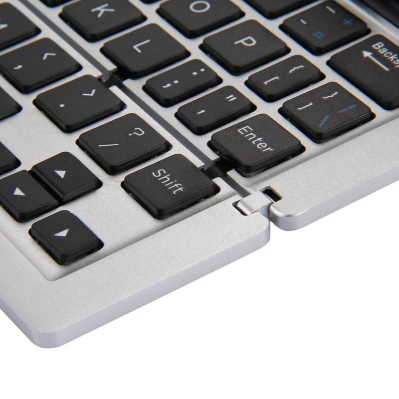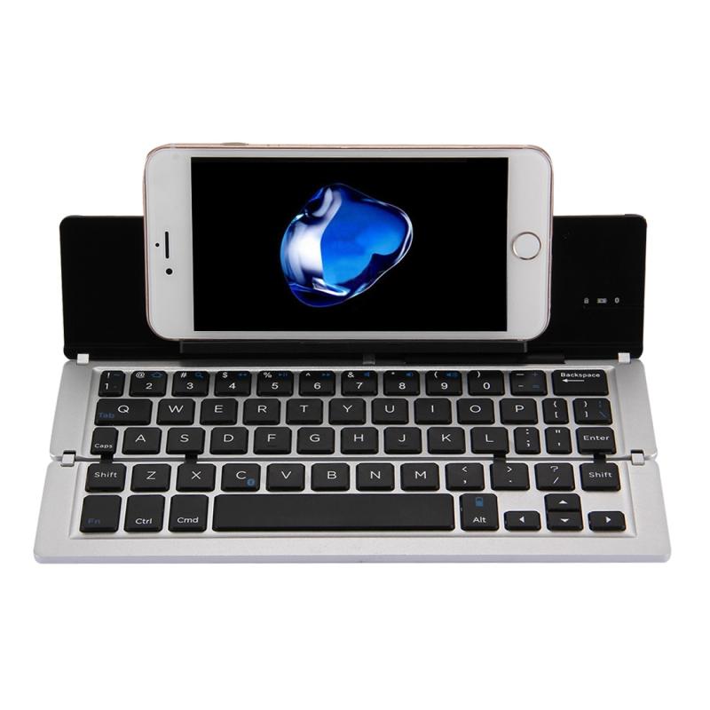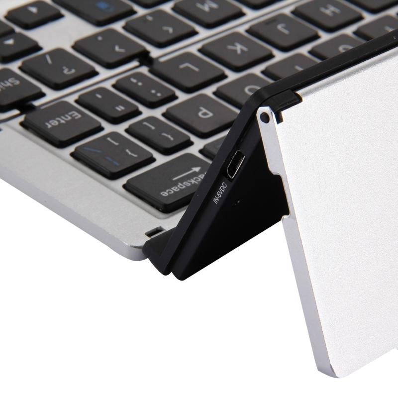 F18 Ultra-slim Rechargeable Foldable 58 Keys Bluetooth Wireless Keyboard with Holder (Silver)