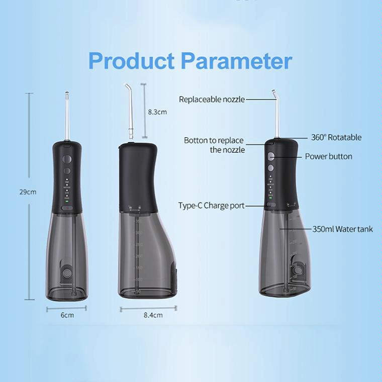 F500 IPX7 Waterproof 350ml Rechargeable Portable Handheld Pulse Electric Flosser(Black)