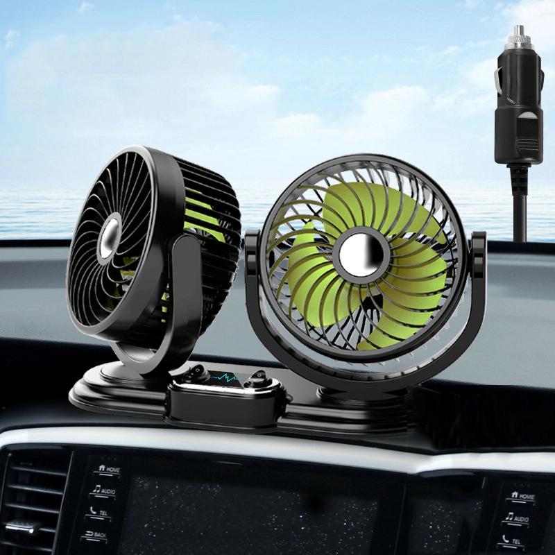 F621 Car Rotatable Turntable Silent Car Double Head Fan, Model: 12V Cigarette Lighter