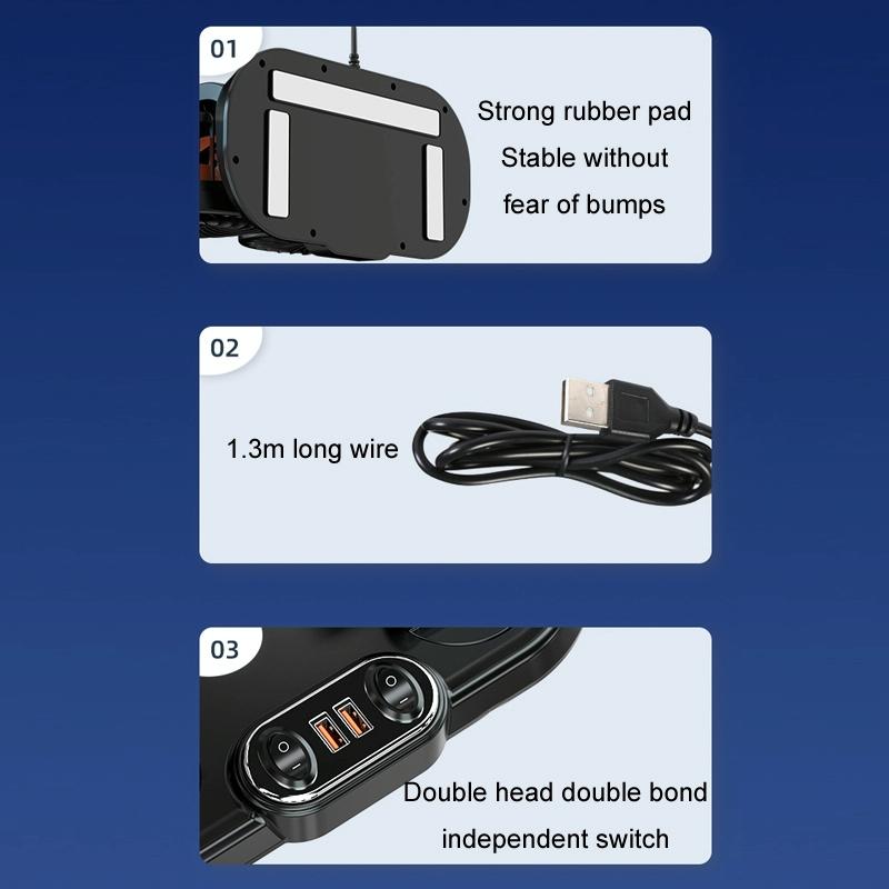 10. 12V/24V dual USB interface, greatly increasing the practicality, can be used to charge the mobile phone