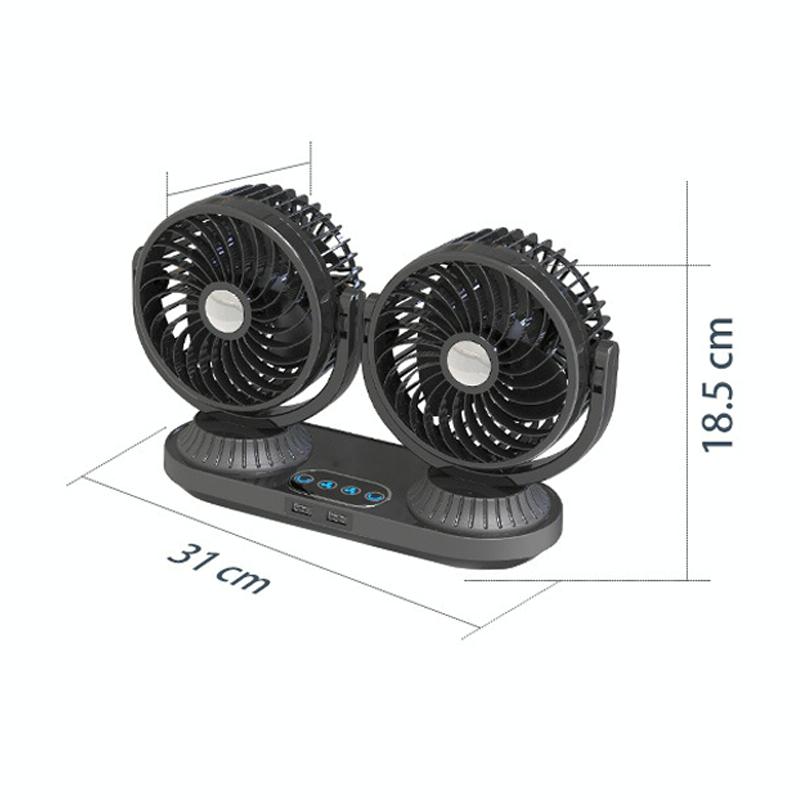 F623 12V/24V Vehicle Electric Oscillating Head Rotatable Double Head Fan (Basic)