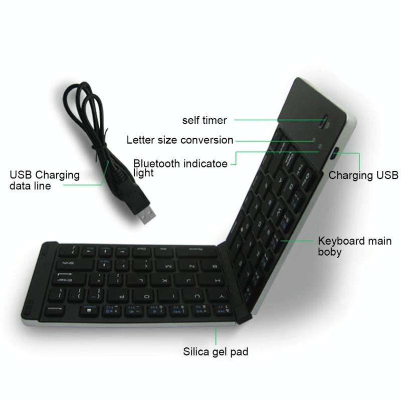 F66 Foldable Bluetooth Wireless 66 Keys Keyboard, Support Android / Windows / iOS (Silver)