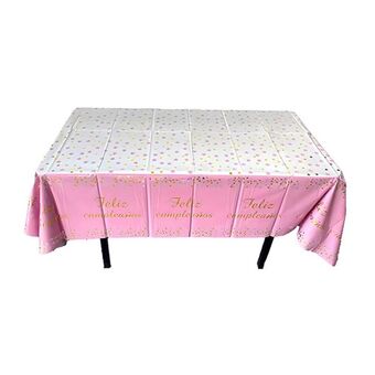 137x183cm Happy Birthday PET Aluminum Film Tablecloths Disposable Waterproof Party Decorative Table Cloth, Style: Spanish Pink Star