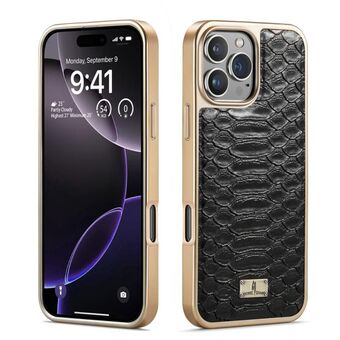 For iPhone 17 Pro Fierre Shann Python Texture Electroplating PU Phone Case(Black) (FIERRE SHANN)