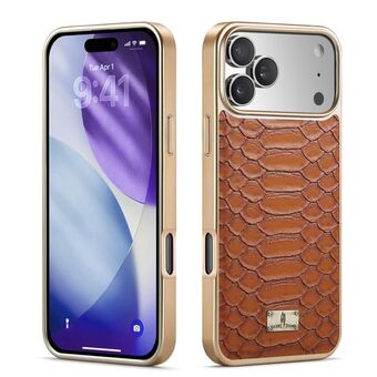 For iPhone 17 Pro Max Fierre Shann Python Texture Electroplating PU Phone Case(Brown) (FIERRE SHANN)