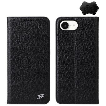 For iPhone 16e Fierre Shann Crocodile Texture Magnetic Genuine Leather Phone Case(Black) (FIERRE SHANN)
