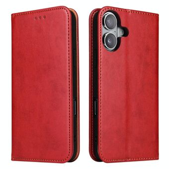 For iPhone 16 Fierre Shann PU Genuine Leather Texture Phone Case(Red) (FIERRE SHANN)