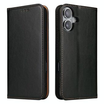 For iPhone 16 Plus Fierre Shann PU Genuine Leather Texture Phone Case(Black) (FIERRE SHANN)