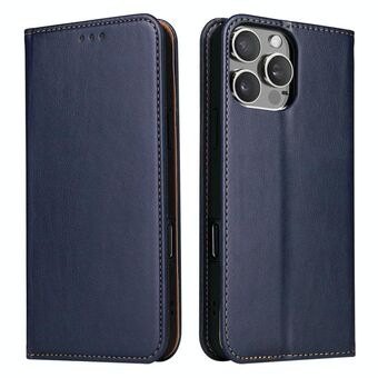 For iPhone 16 Pro Max Fierre Shann PU Genuine Leather Texture Phone Case(Blue) (FIERRE SHANN)