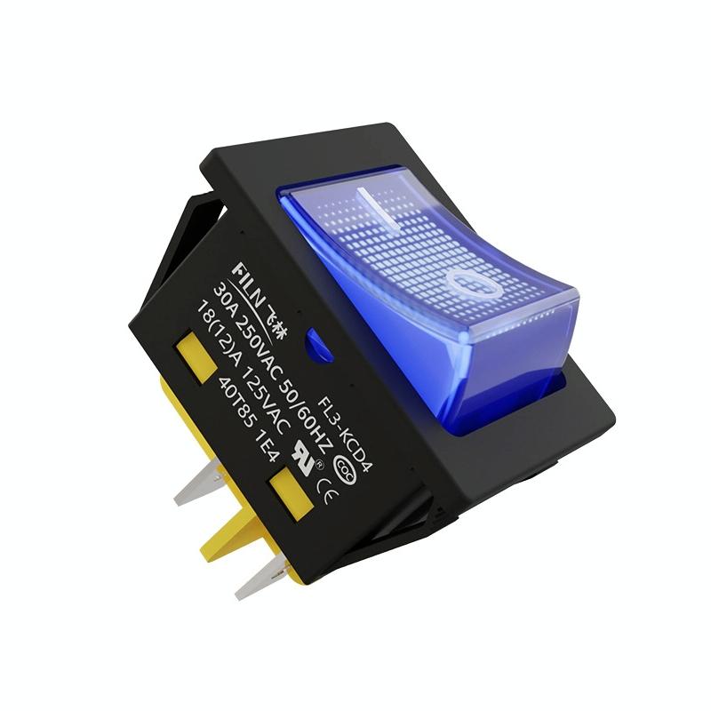 FILN 220V 30A Split Dustproof Boat-type Switch With Light, Specifications: No Waterproof 4 Pin 2 Gear Blue Light (FILN)