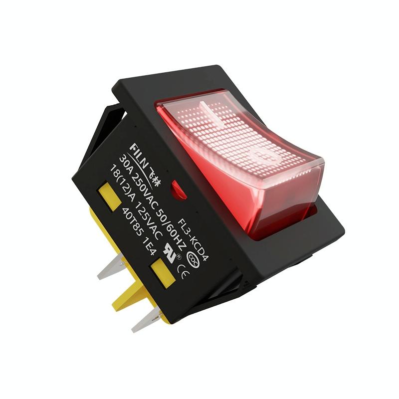 FILN 220V 30A Split Dustproof Boat-type Switch With Light, Specifications: No Waterproof 4 Pin 2 Gear Red Light (FILN)