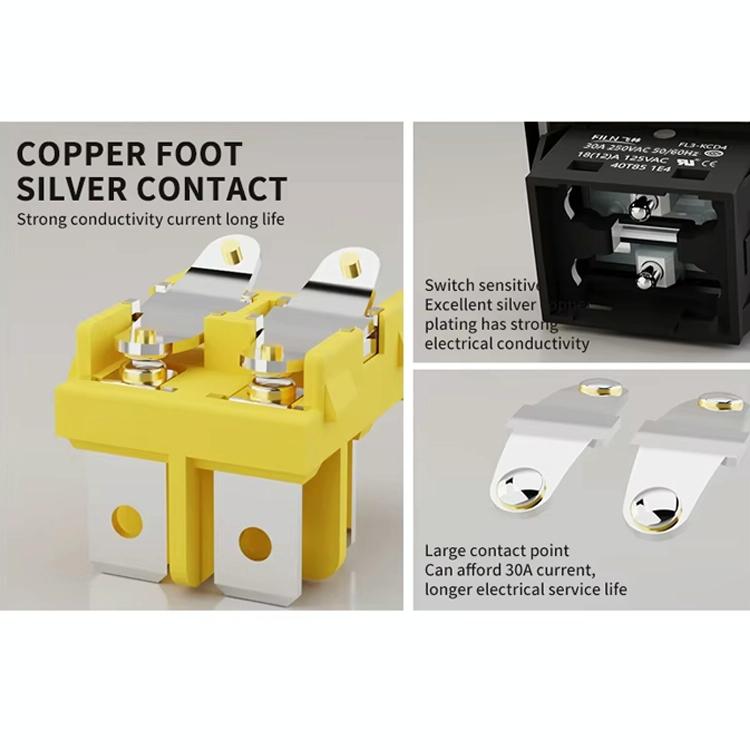 10. All wiring pins are made of copper material, the contacts are enlarged and thickened, and the silver contacts can provide 30A high current