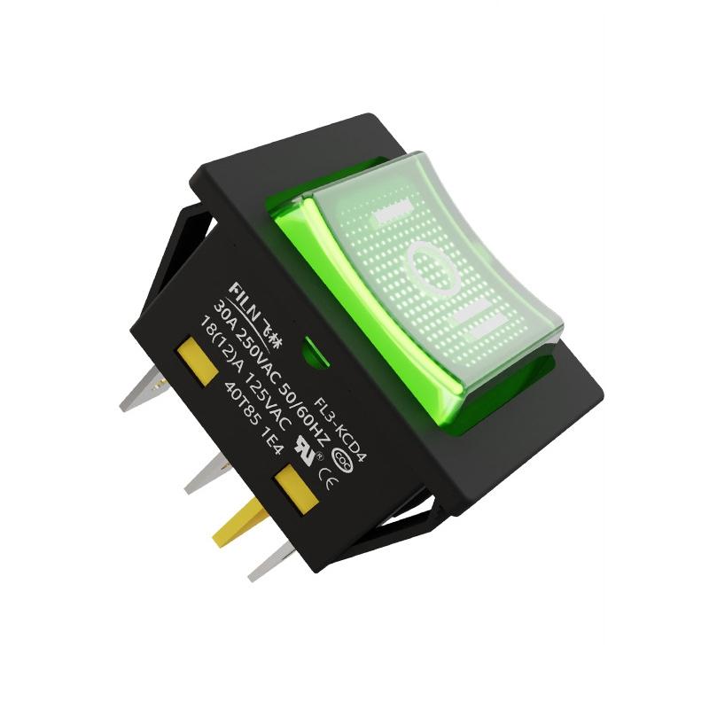 FILN 220V 30A Split Dustproof Boat-type Switch With Light, Specifications: No Waterproof 6 Pin 3 Gear Green Light (FILN)